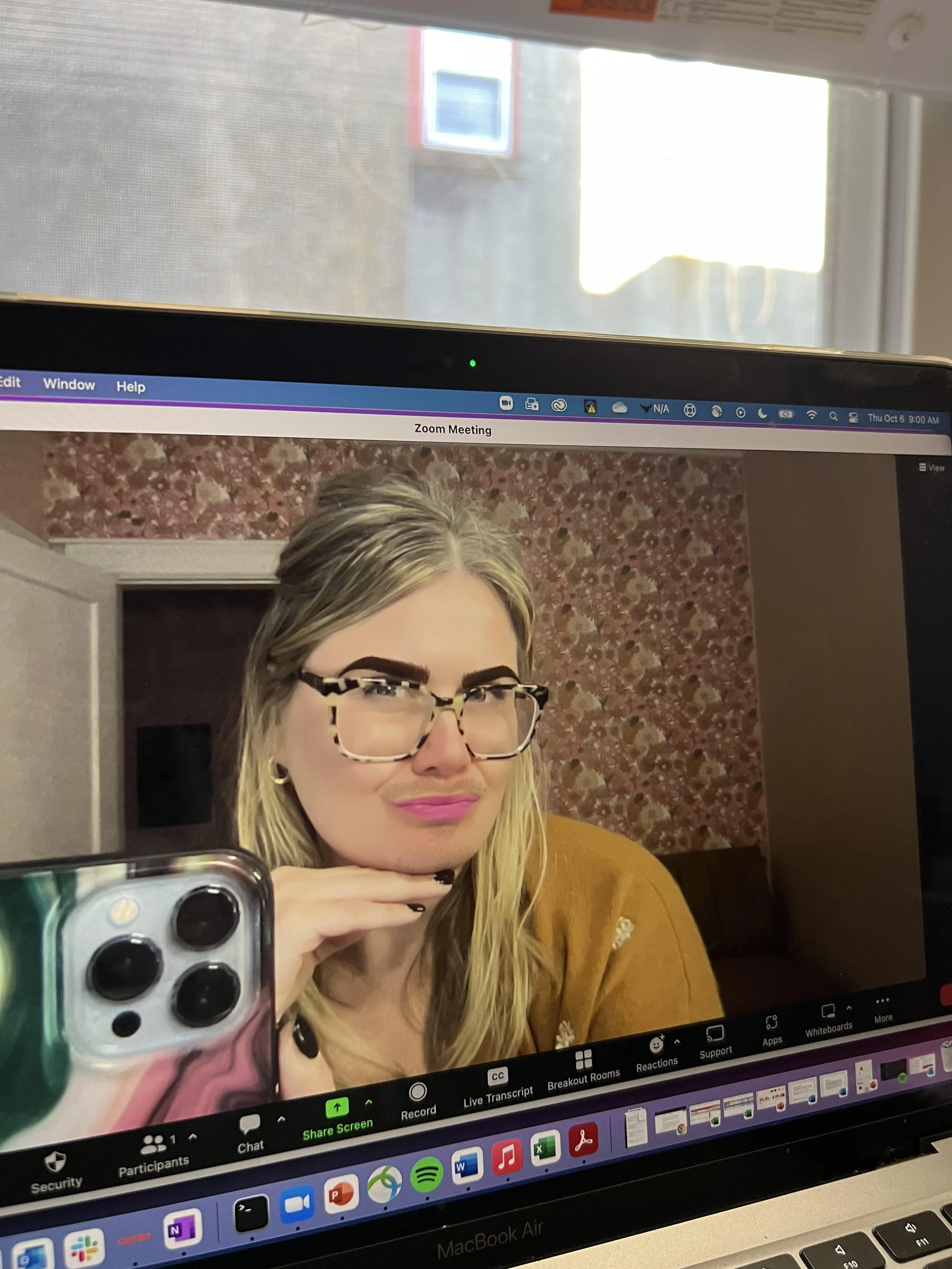 Putting on a full face of make-up on Zoom and not in real life (see above)